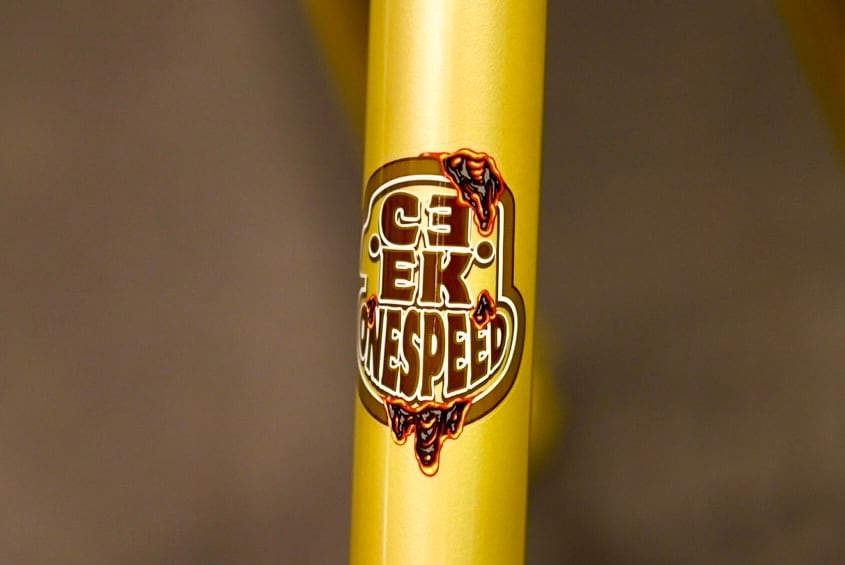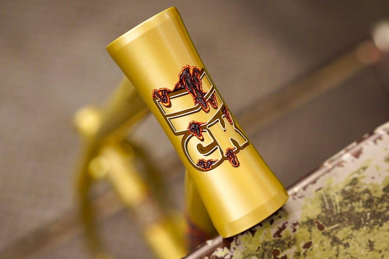 強度向上とスタック高低減を実現する127mmのロングヘッドチューブ、内部ローレット加工を施したインベストメント鋳造ドロップアウト、内蔵式チェーンテンショナー、トップチューブとダウンチューブ両側に配置されたガセットを備える。