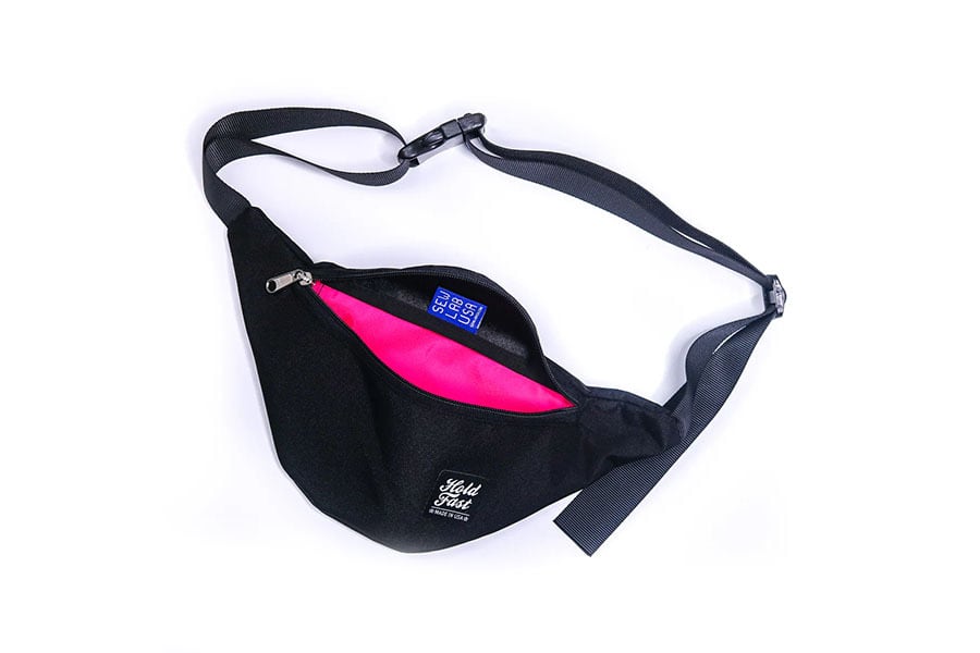 ジッパーを閉じている時はオールブラックで普段使いにちょうどいいボディーバッグです。